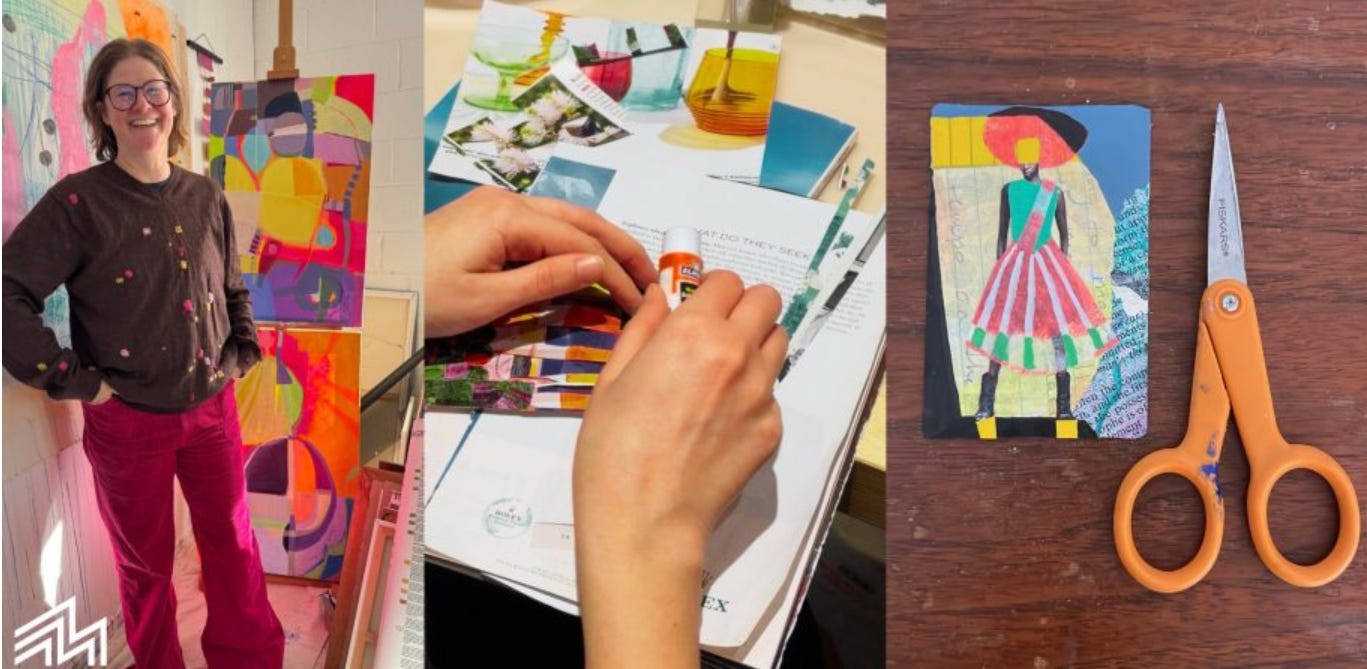 Iranian-American visual artist Nasim Kaheh uses collage and mixed media to examine human connection and the subtle dynamics between people. Using faceless figures and layered silhouettes, she avoids singular narratives, making space for viewers to project their own interpretations onto the works. Informed by her experiences across multiple cultures and observations of interpersonal complexity, her work is both quiet and contemplative. Info