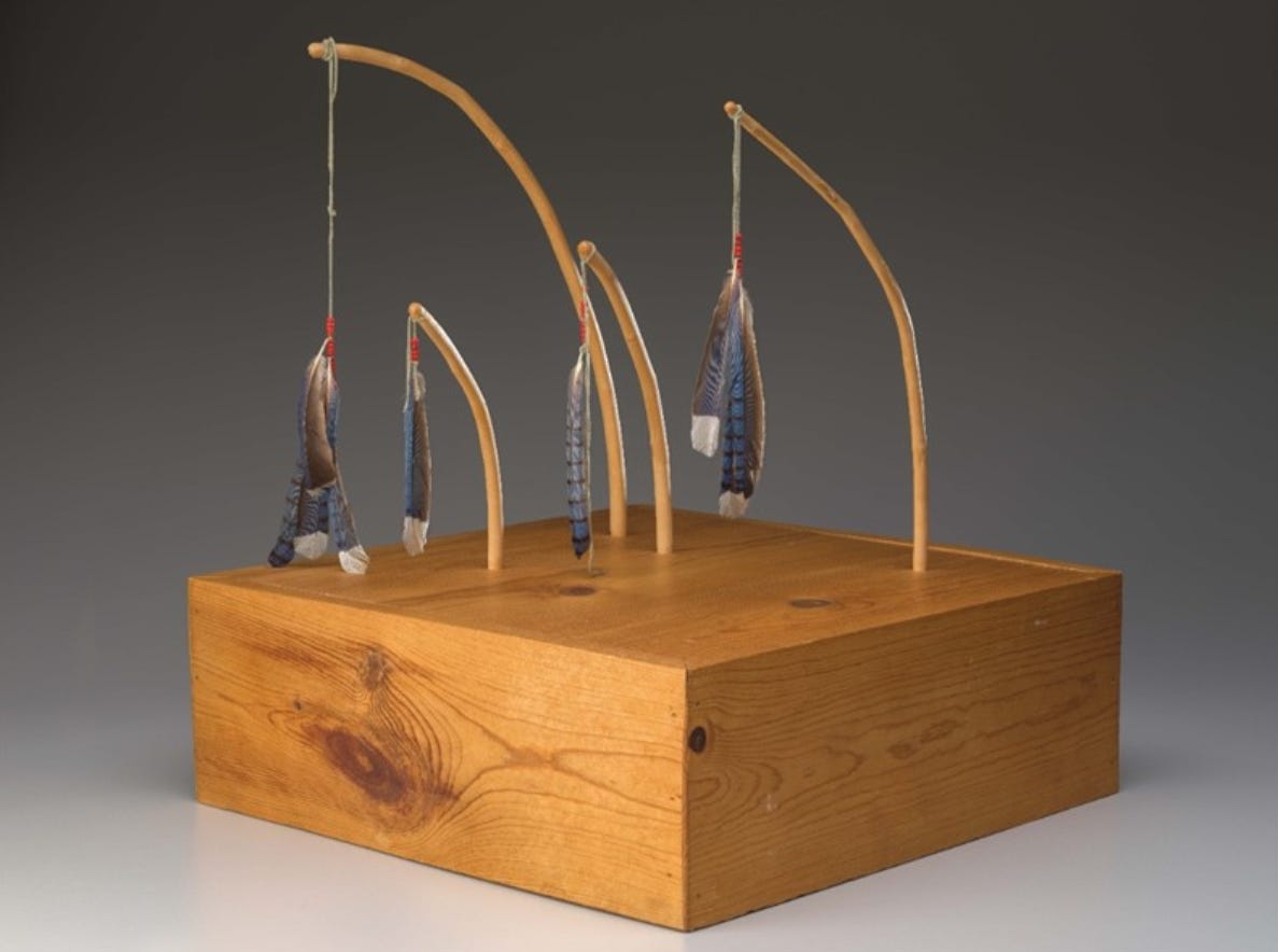 Truman Lowe (Hoocąk) is recognized for his minimalist sculptures of wood, feathers, and other organic materials evoking the waters and woodlands of his homeland. Curator Rebecca Head Trautmann is joined by Lowe’s daughter, Tonia Lowe (Hoocąk), and artist John Hitchcock (Kiowa Tribe of Oklahoma) to discuss Lowe’s artwork and his lasting impact on Indigenous contemporary art. The conversation accompanies the Water’s Edge exhibit, which brings together nearly 50 of the acclaimed artist’s sculptures, drawings, and paintings. More Info